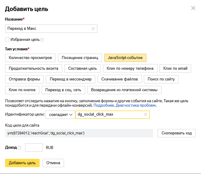Нажмите - Добавить цель